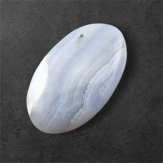 Agat blue lace kaboszon - kamień naturalny szlifowany na kształt kaboszonu. Agat Blue Lace często jest utożsamiany z energią spokoju i harmonii. Ludzie wierzą, że noszenie lub trzymanie tego kamienia może pomóc w łagodzeniu stresu, redukowaniu napięcia i przynoszeniu wewnętrznego spokoju. Kamień posiada spękania na powierzchni. Zdjęcia przedstawiają konkretny kamień dostępny w ofercie, kupując otrzymasz właśnie ten kaboszon. (Dokładne wymiary można znaleźć w opisie poniżej).