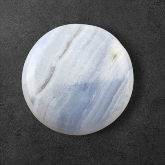 Agat blue lace kaboszon - kamień naturalny szlifowany na kształt kaboszonu. Agat Blue Lace często jest utożsamiany z energią spokoju i harmonii. Ludzie wierzą, że noszenie lub trzymanie tego kamienia może pomóc w łagodzeniu stresu, redukowaniu napięcia i przynoszeniu wewnętrznego spokoju. Zdjęcia przedstawiają konkretny kamień dostępny w ofercie, kupując otrzymasz właśnie ten kaboszon. (Dokładne wymiary można znaleźć w opisie poniżej).