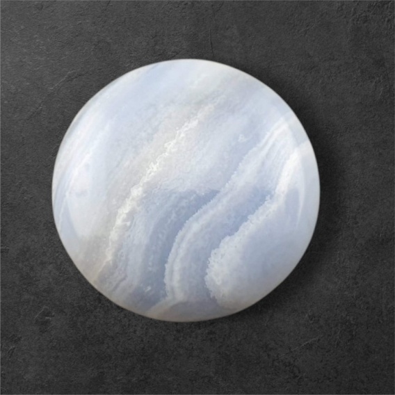 Agat blue lace kaboszon - kamień naturalny szlifowany na kształt kaboszonu. Agat Blue Lace często jest utożsamiany z energią spokoju i harmonii. Ludzie wierzą, że noszenie lub trzymanie tego kamienia może pomóc w łagodzeniu stresu, redukowaniu napięcia i przynoszeniu wewnętrznego spokoju. Zdjęcia przedstawiają konkretny kamień dostępny w ofercie, kupując otrzymasz właśnie ten kaboszon. (Dokładne wymiary można znaleźć w opisie poniżej).