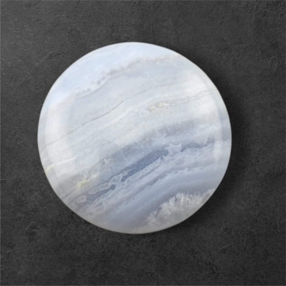 Blue lace agate cabochon - natural stone. Blue Lace Agate is often associated with the energy of peace and harmony. People believe that wearing or holding this stone can help relieve stress, reduce tension, and bring inner peace. Photos show a specific stone available in the offer, when you buy you will receive this cabochon. (For exact dimensions, see description below).
