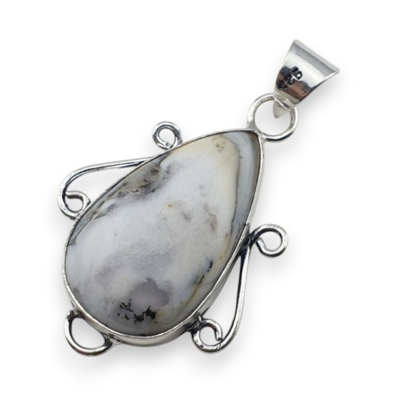 Agat dendrytowy zawieszka - gotowa zawieszka z kamieniem w okuciu w kolorze srebrnym. Ręcznie robiony wisior z kamieniem naturalnym do stworzenia naszyjnika. Zdjęcia przedstawiają konkretny wisior dostępny w ofercie, kupując otrzymasz właśnie ten egzemplarz. (Dokładne wymiary można znaleźć w opisie poniżej).
