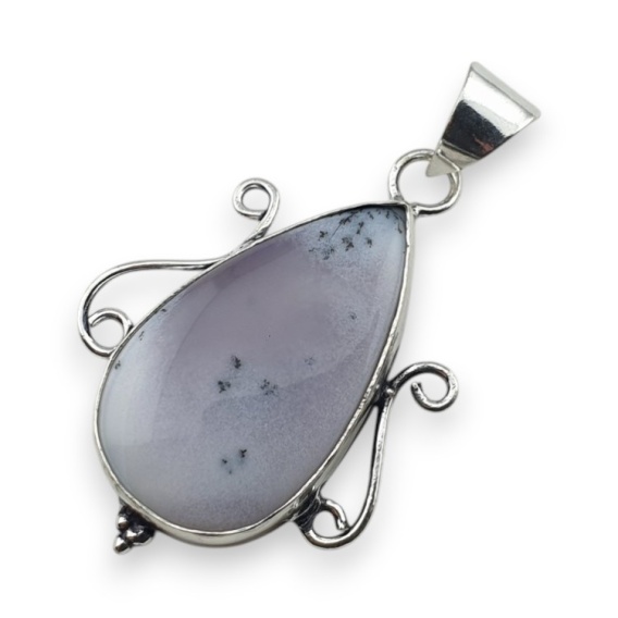 Agat dendrytowy zawieszka - gotowa zawieszka z kamieniem w okuciu w kolorze srebrnym. Ręcznie robiony wisior z kamieniem naturalnym do stworzenia naszyjnika. Zdjęcia przedstawiają konkretny wisior dostępny w ofercie, kupując otrzymasz właśnie ten egzemplarz. (Dokładne wymiary można znaleźć w opisie poniżej).
