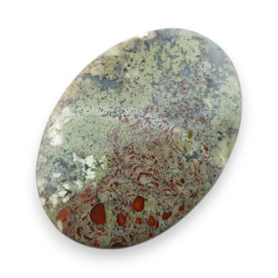 Agat mszysty z indonezjii kaboszon - kamień naturalny szlifowany na kształt kaboszonu. Zdjęcia przedstawiają konkretny kamień dostępny w ofercie, kupując otrzymasz właśnie ten kaboszon. (Dokładne wymiary można znaleźć w opisie poniżej).
