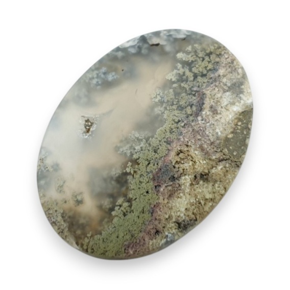 Indonesian moss agate cabochon - natural stone. Photos show a specific stone available in the offer, when you buy you will receive this cabochon. (For exact dimensions, see description below).