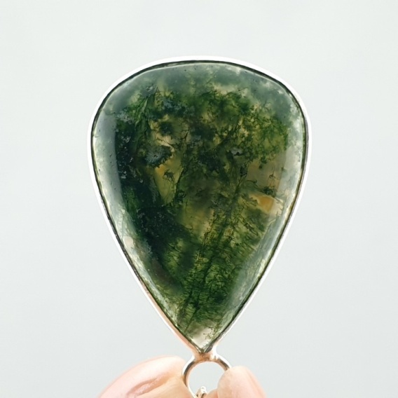 Agat mszysty zawieszka - gotowa zawieszka z kamieniem w okuciu w kolorze srebrnym. Ręcznie robiony wisior z kamieniem naturalnym do stworzenia naszyjnika. Zdjęcia przedstawiają konkretny wisior dostępny w ofercie, kupując otrzymasz właśnie ten egzemplarz. (Dokładne wymiary można znaleźć w opisie poniżej).