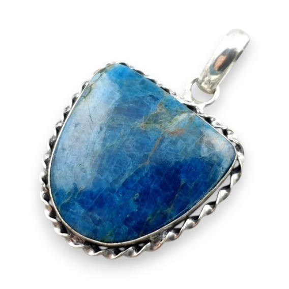 Apatyt zawieszka - gotowa zawieszka z kamieniem w okuciu w kolorze srebrnym. Ręcznie robiony wisior z kamieniem naturalnym do stworzenia naszyjnika. Zdjęcia przedstawiają konkretny wisior dostępny w ofercie, kupując otrzymasz właśnie ten egzemplarz. (Dokładne wymiary można znaleźć w opisie poniżej).