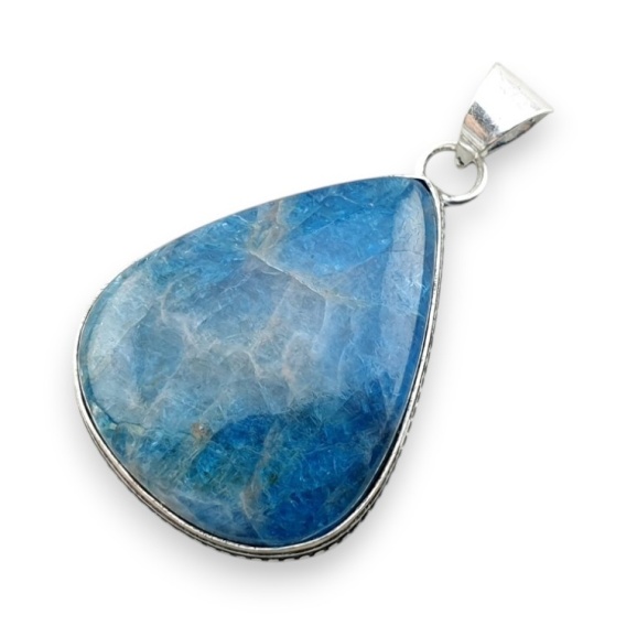 Apatyt zawieszka - gotowa zawieszka z kamieniem w okuciu w kolorze srebrnym. Ręcznie robiony wisior z kamieniem naturalnym do stworzenia naszyjnika. Zdjęcia przedstawiają konkretny wisior dostępny w ofercie, kupując otrzymasz właśnie ten egzemplarz. (Dokładne wymiary można znaleźć w opisie poniżej).