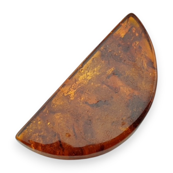 Bursztyn bałtycki płaskie półkole naturalny. Oszlifowany kawałek bursztynu bałtyckiego o ciepłej barwie, idealny do kolekcjonowania lub tworzenia ciekawej biżuterii hand-made. Zdjęcia prezentują konkretną oferowany okaz kupując otrzymasz dokładnie ten egzemplarz.
