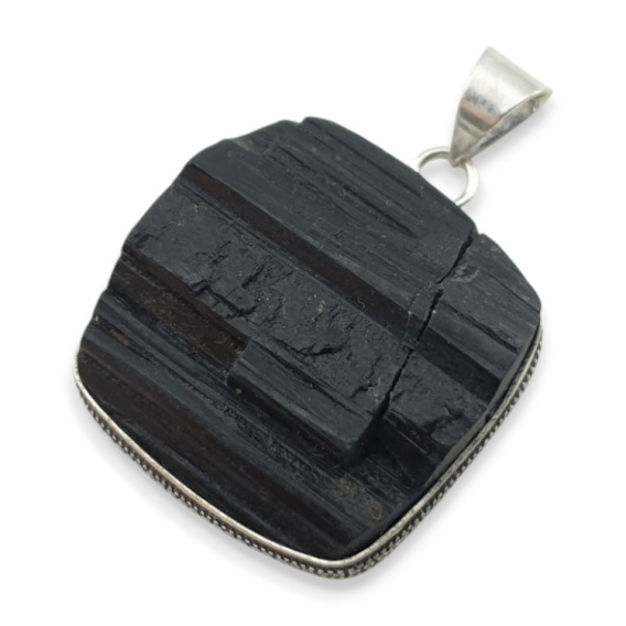 Czarny turmalin zawieszka - gotowa zawieszka z kamieniem w okuciu w kolorze srebrnym. Ręcznie robiony wisior z kamieniem naturalnym do stworzenia naszyjnika. Zdjęcia przedstawiają konkretny wisior dostępny w ofercie, kupując otrzymasz właśnie ten egzemplarz. (Dokładne wymiary można znaleźć w opisie poniżej).