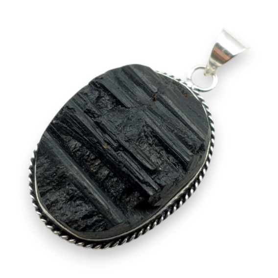 Czarny turmalin zawieszka - gotowa zawieszka z kamieniem w okuciu w kolorze srebrnym. Ręcznie robiony wisior z kamieniem naturalnym do stworzenia naszyjnika. Zdjęcia przedstawiają konkretny wisior dostępny w ofercie, kupując otrzymasz właśnie ten egzemplarz. (Dokładne wymiary można znaleźć w opisie poniżej).