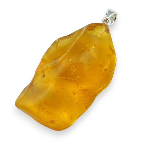 Bursztyn bałtycki zawieszka z krawatką wykonaną ze srebra 925. Oszlifowany kawałek bursztynu bałtyckiego o ciepłej barwie, idealny do stworzenia pięknego naszyjnika. Burszyn jest wyposażony w srebrną krawatkę, wystarczy dodać rzemyk lub łańcuszek. Zdjęcia prezentują konkretny oferowany okaz, kupując otrzymasz dokładnie ten egzemplarz.
