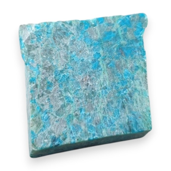 Chrysocolla cut raw - natural stone. A raw mineral cut into slices is a natural stone divided into thin, decorative sections that reveal its colors and characteristic veining. It serves as a striking material for jewelry, ornaments, and collectible pieces. Photos show a specific stone available in the offer, when you buy you will receive this cabochon. (For exact dimensions, see description below).
