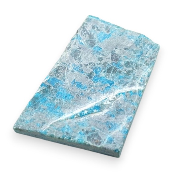 Chryzokola cięta surowa - kamień naturalny. Surowy minerał cięty na plastry to naturalny kamień podzielony na cienkie, dekoracyjne fragmenty odsłaniające jego barwy i charakterystyczne żyłkowania. Stanowi efektowny materiał do biżuterii, ozdób i elementów kolekcjonerskich. (Dokładny rozmiar sprawdź w opisie na dole strony).