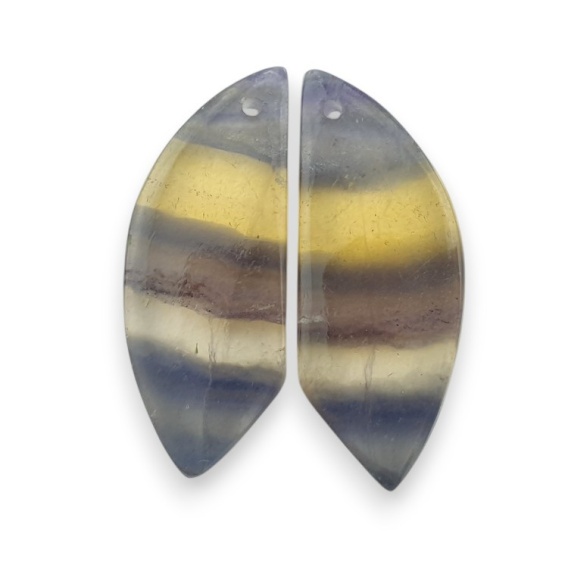 Fluoryt para kaboszonów z dziurką - kamień naturalny. Para naturalnych kaboszonów dopasowanych kolorostycznie i wymiarowo. Kamienie posiadają otwory montażowe do łatwego stworzenia kolczyków. Zdjęcia prezentują konkretny oferowany kamień, kupując otrzymasz dokładnie ten egzemplarz. Kamienie mają naturalne wewnętrzne zapowietrzenia. (Dokładny rozmiar sprawdź w opisie na dole strony).