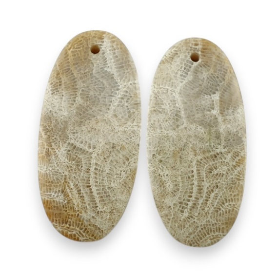 Fossil pair of cabochons with hole - natural stone