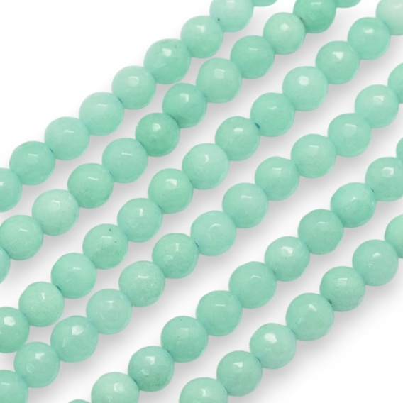 Amazonite beads - colored Jade strand - a faceted ball with a hole approximately 6 mm in diameter for creating bracelets, necklaces, and other jewelry pieces. (For exact size, see the description at the bottom of the page).