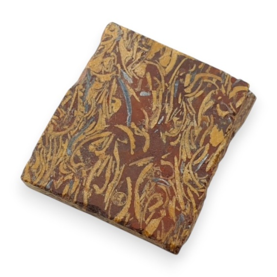 Mariam jasper cut raw - natural stone. A raw mineral cut into slices is a natural stone divided into thin, decorative sections that reveal its colors and characteristic veining. It serves as a striking material for jewelry, ornaments, and collectible pieces. Photos show a specific stone available in the offer, when you buy you will receive this cabochon. (For exact dimensions, see description below).