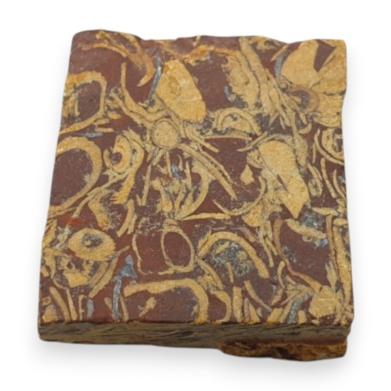 Jaspis mariam cięty surowy - kamień naturalny. Surowy minerał cięty na plastry to naturalny kamień podzielony na cienkie, dekoracyjne fragmenty odsłaniające jego barwy i charakterystyczne żyłkowania. Stanowi efektowny materiał do biżuterii, ozdób i elementów kolekcjonerskich. (Dokładny rozmiar sprawdź w opisie na dole strony).