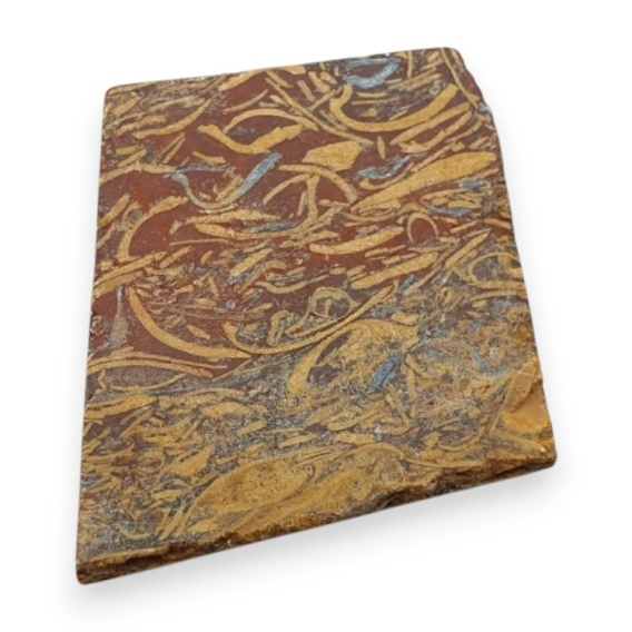 Jaspis mariam cięty surowy - kamień naturalny. Surowy minerał cięty na plastry to naturalny kamień podzielony na cienkie, dekoracyjne fragmenty odsłaniające jego barwy i charakterystyczne żyłkowania. Stanowi efektowny materiał do biżuterii, ozdób i elementów kolekcjonerskich. (Dokładny rozmiar sprawdź w opisie na dole strony).