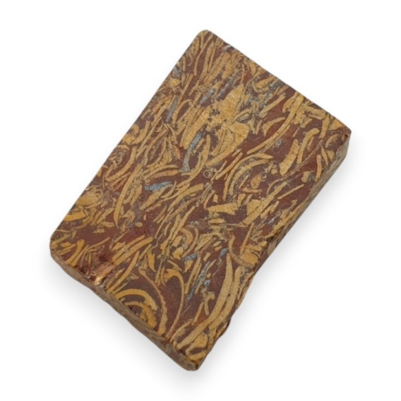 Mariam jasper cut raw - natural stone. A raw mineral cut into slices is a natural stone divided into thin, decorative sections that reveal its colors and characteristic veining. It serves as a striking material for jewelry, ornaments, and collectible pieces. Photos show a specific stone available in the offer, when you buy you will receive this cabochon. (For exact dimensions, see description below).