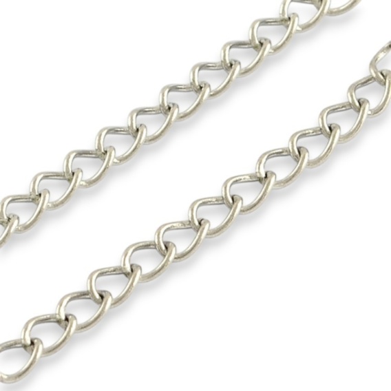 Łańcuszek przedłużkowy, skręcany wykonany ze stali szlachetnej 304, sprzedawany w odcinkach 0,5 mm, odcinanych z rolki. Przy zakupie wielkokrotności wysyłany w jesnym kawałku.