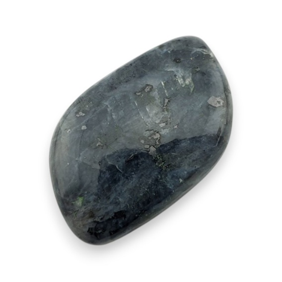 Larvikit kaboszon - kamień naturalny szlifowany na kształt kaboszonu. Larvikit jest zazwyczaj jasnoszary, szaro-różowy lub szaro-niebieski, ale może mieć różne odcienie w zależności od konkretnej odmiany. Posiada charakterystyczne błyszczące kryształy, które nadają mu unikalny wygląd. Zdjęcia przedstawiają konkretny kamień dostępny w ofercie, kupując otrzymasz właśnie ten kaboszon. (Dokładne wymiary można znaleźć w opisie poniżej).