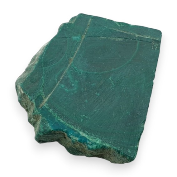 Malachit cięty surowy - kamień naturalny. Surowy minerał cięty na plastry to naturalny kamień podzielony na cienkie, dekoracyjne fragmenty odsłaniające jego barwy i charakterystyczne żyłkowania. Stanowi efektowny materiał do biżuterii, ozdób i elementów kolekcjonerskich. (Dokładny rozmiar sprawdź w opisie na dole strony).