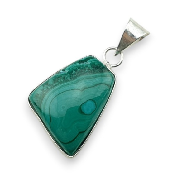 Malachit zawieszka - gotowa zawieszka z kamieniem w okuciu w kolorze srebrnym. Ręcznie robiony wisior z kamieniem naturalnym do stworzenia naszyjnika. Zdjęcia przedstawiają konkretny wisior dostępny w ofercie, kupując otrzymasz właśnie ten egzemplarz. (Dokładne wymiary można znaleźć w opisie poniżej).