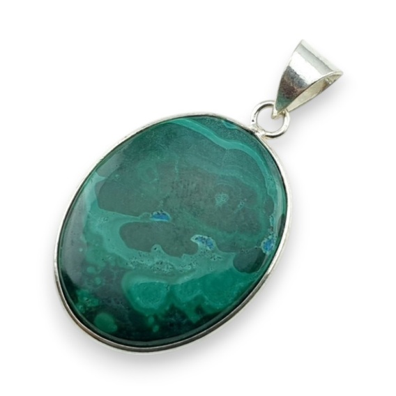 Malachit zawieszka - gotowa zawieszka z kamieniem w okuciu w kolorze srebrnym. Ręcznie robiony wisior z kamieniem naturalnym do stworzenia naszyjnika. Zdjęcia przedstawiają konkretny wisior dostępny w ofercie, kupując otrzymasz właśnie ten egzemplarz. (Dokładne wymiary można znaleźć w opisie poniżej).