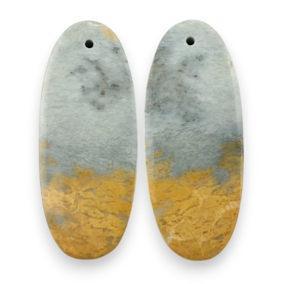 Para naturalnych kaboszonów dopasowanych kolorostycznie i wymiarowo. Kamienie posiadają otwory montażowe do łatwego stworzenia kolczyków.