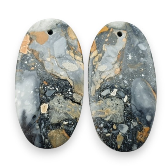 A pair of natural cabochons, matched in color and size. The stones have mounting holes for easy earring creation.