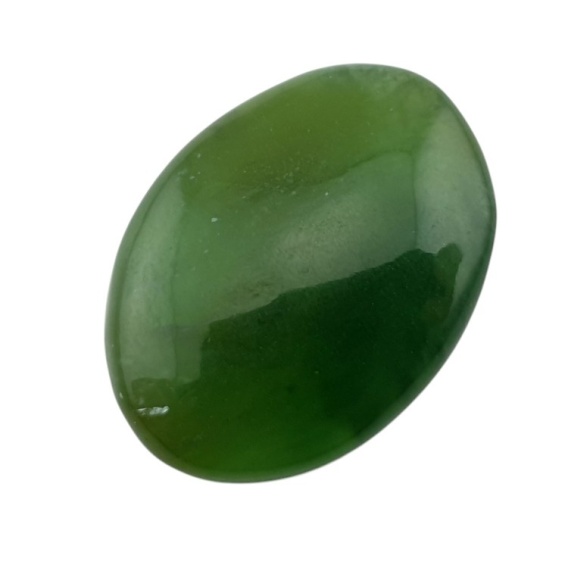 Nefryt kaboszon - kamień naturalny szlifowany na kształt kaboszonu. W niektórych kulturach wierzenia ludowe przypisywały nefrytowi właściwości lecznicze. Uważano, że noszenie kamienia może przynosić zdrowie i dobre samopoczucie. W dawnych czasach kamień ten był także stosowany jako amulet ochronny przed chorobami. Zdjęcia przedstawiają konkretny kamień dostępny w ofercie, kupując otrzymasz właśnie ten kaboszon. (Dokładne wymiary można znaleźć w opisie poniżej).