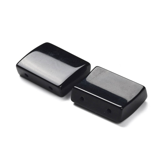 Obsydian czarny profilowany prostokąt z dwiema dziurkami . Koralik z kamienia naturalnego. (Dokładny rozmiar sprawdź w opisie na dole strony).
