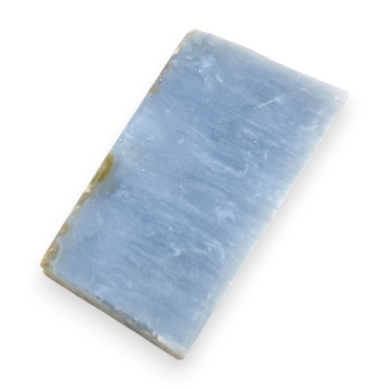 Blue opal cut raw - natural stone. A raw mineral cut into slices is a natural stone divided into thin, decorative sections that reveal its colors and characteristic veining. It serves as a striking material for jewelry, ornaments, and collectible pieces. Photos show a specific stone available in the offer, when you buy you will receive this cabochon. (For exact dimensions, see description below).