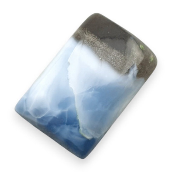 Opal niebieski kaboszon - kamień naturalny. Kaboszon z kamienia naturalnego to gładko oszlifowany minerał o wypukłej powierzchni i płaskim spodzie. Taki szlif podkreśla naturalny rysunek i barwę kamienia, dlatego jest często wykorzystywany w biżuterii. Zdjęcia przedstawiają konkretny kamień dostępny w ofercie, kupując otrzymasz właśnie ten kaboszon. (Dokładne wymiary można znaleźć w opisie poniżej).