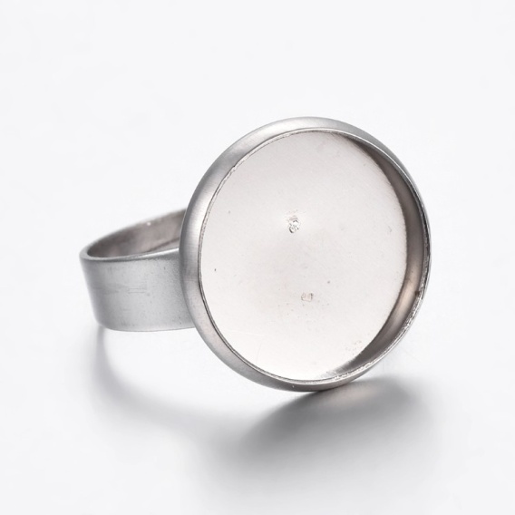 Pierścionek z bazą do wklejenia kaboszonu 14 mm, wykonany ze stali szlachetnej 304, o rozmiarze 17-18 mm.