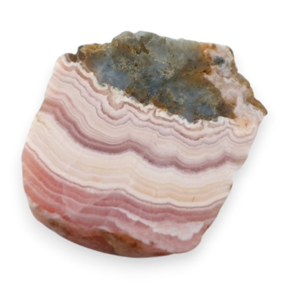 Rhodochrosite cut raw - natural stone. A raw mineral cut into slices is a natural stone divided into thin, decorative sections that reveal its colors and characteristic veining. It serves as a striking material for jewelry, ornaments, and collectible pieces. Photos show a specific stone available in the offer, when you buy you will receive this cabochon. (For exact dimensions, see description below).