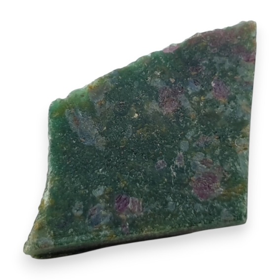 Ruby in fuchsite cut raw - natural stone. A raw mineral cut into slices is a natural stone divided into thin, decorative sections that reveal its colors and characteristic veining. It serves as a striking material for jewelry, ornaments, and collectible pieces. Photos show a specific stone available in the offer, when you buy you will receive this cabochon. (For exact dimensions, see description below).