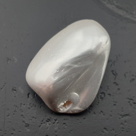 Naturalna bryłka z dziurką - fragment muszli z wykonanym otworem, umożliwiającym bezpośrednie wykorzystanie w biżuterii. Bryłka jest powleczona powłoką nabłyszczającą i nadającą kolor. Idealnie sprawdza się w projektach o organicznym, naturalnym charakterze.