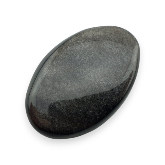 Silver obsidian cabochon - natural stone. Cabochon is a smoothly polished gemstone with a domed top and flat base. This cut enhances the natural color and patterns of the stone, making it popular in jewelry making. Photos show a specific stone available in the offer, when you buy you will receive this cabochon. (For exact dimensions, see description below).