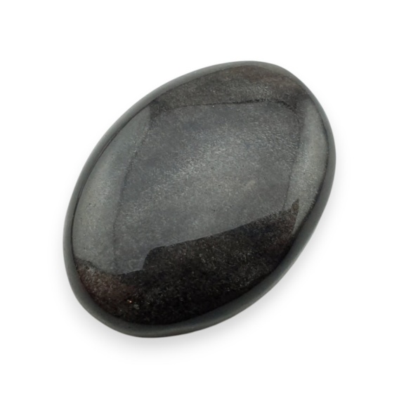 Obsydian srebrny kaboszon - kamień naturalny. Kaboszon z kamienia naturalnego to gładko oszlifowany minerał o wypukłej powierzchni i płaskim spodzie. Taki szlif podkreśla naturalny rysunek i barwę kamienia, dlatego jest często wykorzystywany w biżuterii. Zdjęcia przedstawiają konkretny kamień dostępny w ofercie, kupując otrzymasz właśnie ten kaboszon. (Dokładne wymiary można znaleźć w opisie poniżej).