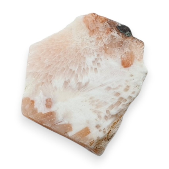 Skolecyt cięty surowy - kamień naturalny. Surowy minerał cięty na plastry to naturalny kamień podzielony na cienkie, dekoracyjne fragmenty odsłaniające jego barwy i charakterystyczne żyłkowania. Stanowi efektowny materiał do biżuterii, ozdób i elementów kolekcjonerskich. (Dokładny rozmiar sprawdź w opisie na dole strony).