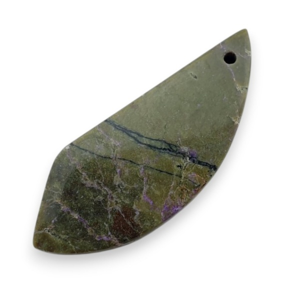 Stichtite cabochon with a hole - natural stone. Photos show a specific stone available in the offer, when you buy you will receive this cabochon. (For exact dimensions, see description below).