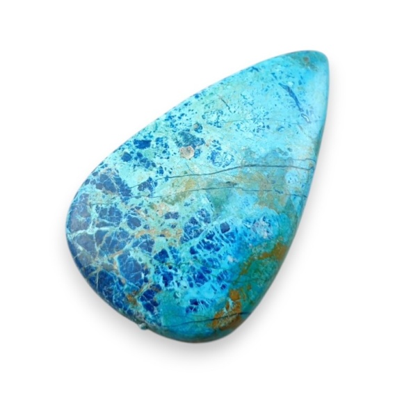 Szatukit kaboszon - kamień naturalny szlifowany na kształt kaboszonu. Szatukit to unikalny minerał miedziowy, który wyróżnia się niezwykłymi odcieniami niebieskiego i zielonego. Jego wyjątkowy wygląd oraz rzadkość sprawiają, że jest idealnym wyborem do tworzenia biżuterii oraz kolekcjonerskich ozdób. Zdjęcia przedstawiają konkretny kamień dostępny w ofercie, kupując otrzymasz właśnie ten kaboszon. (Dokładne wymiary można znaleźć w opisie poniżej).