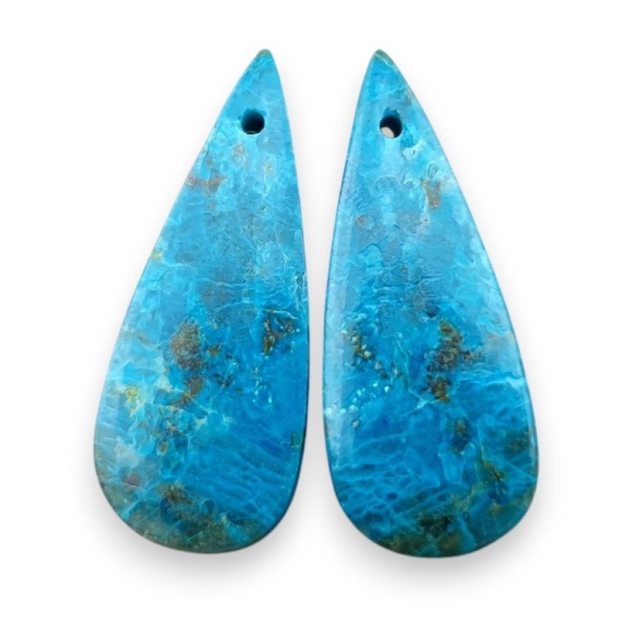 Shattuckite pair of cabohones with holes - natural stone. A pair of natural cabochons, matched in color and size. The stones have mounting holes for easy earring creation. The photos show a specific stone available in the offer, when you buy you will receive this cabochon. (For exact dimensions, see description below).