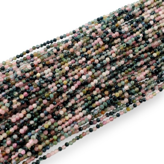 Turmalin koralik - kulka fasetowana z dziurką o średnicy około 1,9 mm do tworzenia bransoletek, naszyjników i innych elementów biżuterii. (Dokładny rozmiar sprawdź w opisie na dole strony).