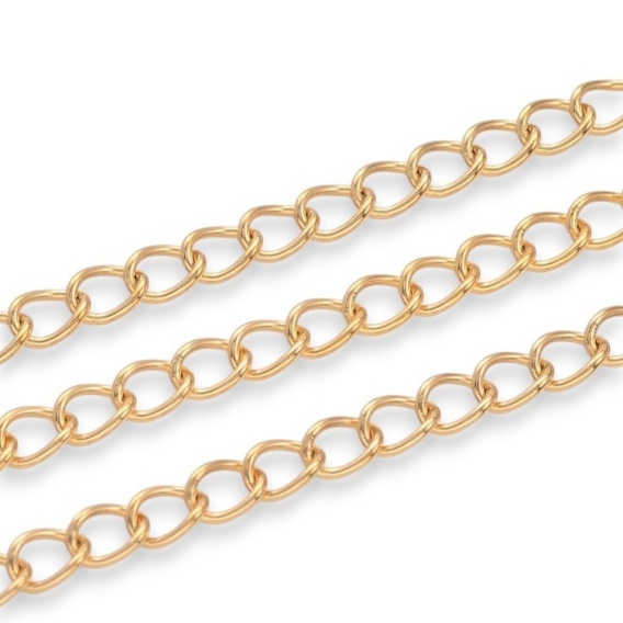 This twisted extension chain is made of 304 stainless steel, gold-plated using the most abrasion-resistant IP method. It is sold in 0.5 mm sections cut from a roll. Multiple orders will be shipped in one piece.