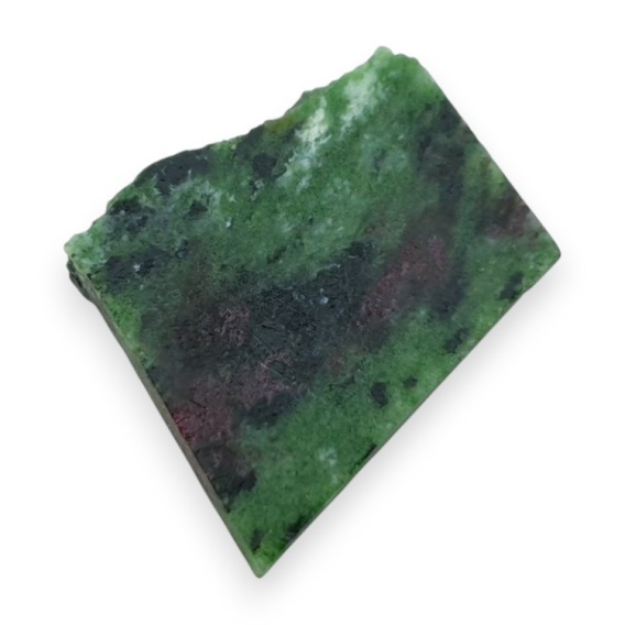 Zoisyte with ruby cut raw - natural stone. A raw mineral cut into slices is a natural stone divided into thin, decorative sections that reveal its colors and characteristic veining. It serves as a striking material for jewelry, ornaments, and collectible pieces. Photos show a specific stone available in the offer, when you buy you will receive this cabochon. (For exact dimensions, see description below).