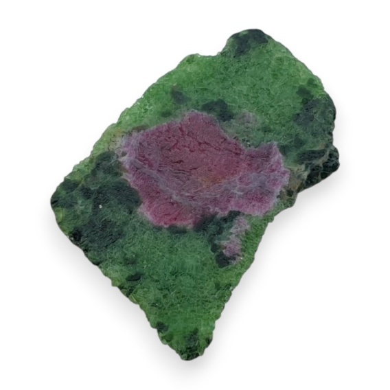Zoisyte with ruby cut raw - natural stone. A raw mineral cut into slices is a natural stone divided into thin, decorative sections that reveal its colors and characteristic veining. It serves as a striking material for jewelry, ornaments, and collectible pieces. Photos show a specific stone available in the offer, when you buy you will receive this cabochon. (For exact dimensions, see description below).